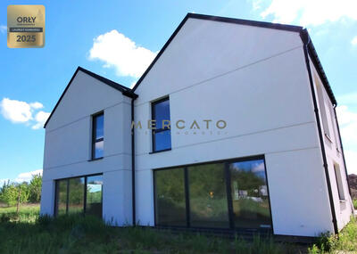 Nowy ,atrakcyjny pod względem architektonicznym, dom w zabudowie bliźniaczej, położony pośród niskiej zabudowy ...